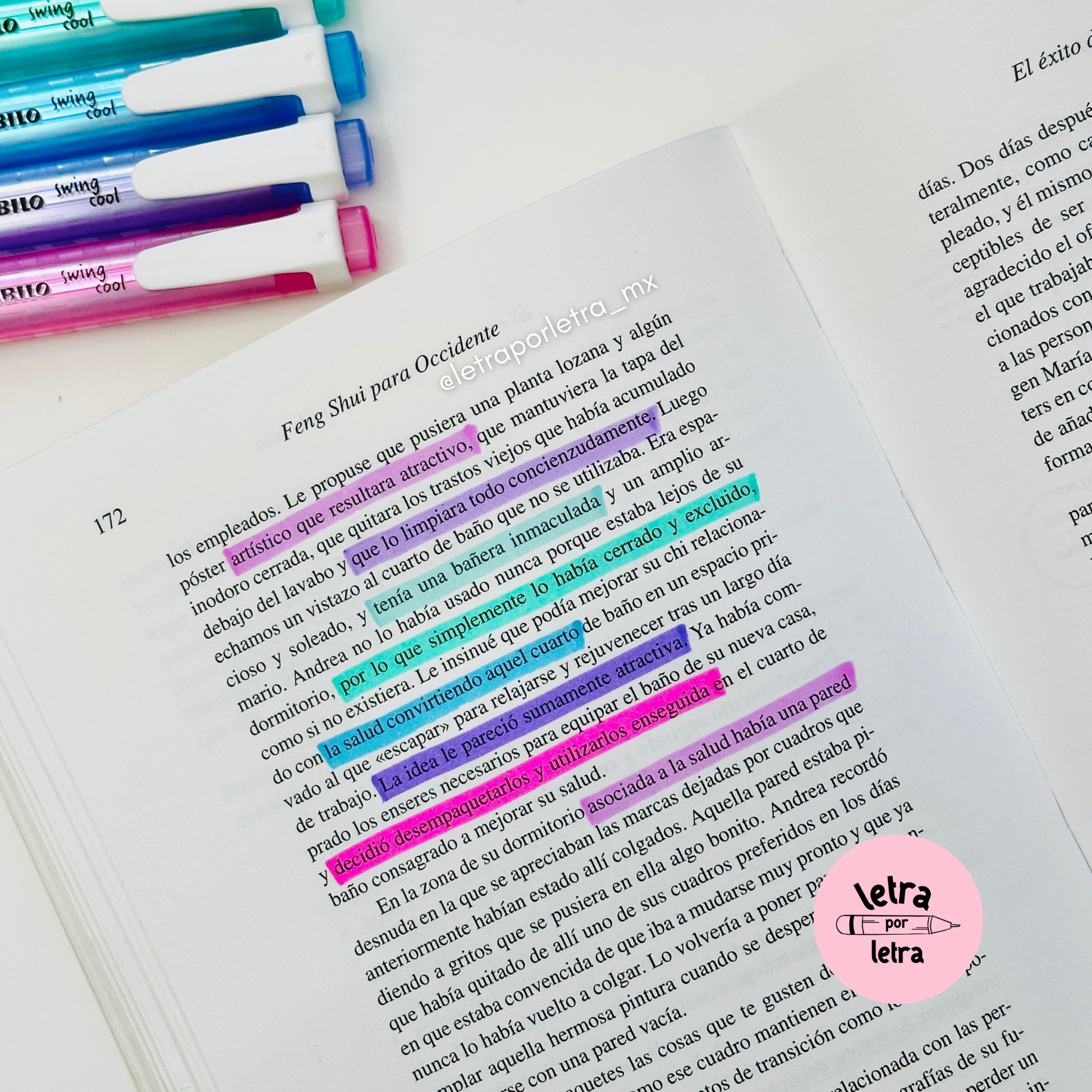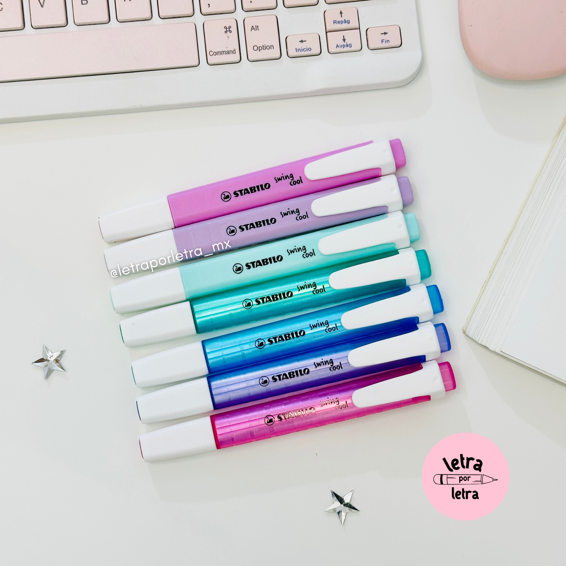 Gama de 7 tonos de resaltadores Stabilo Swing Cool: 3 pastel y 4 neón.