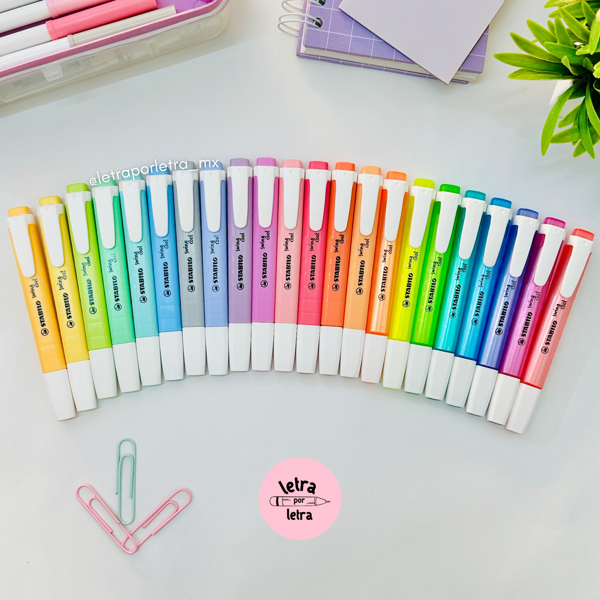 Gama completa de 22 colores de Stabilo Swing Cool: 14 pastel y 8 neón. El toque de color para tus apuntes