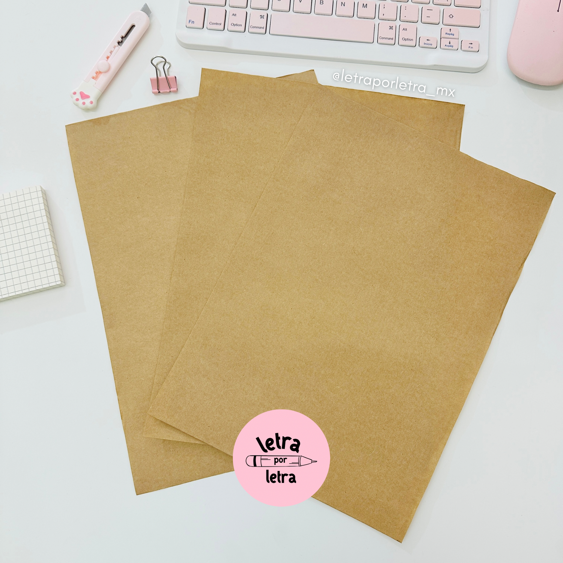 Paquete de 3 hojas de papel kraft tamaño carta. Gramaje: 110
