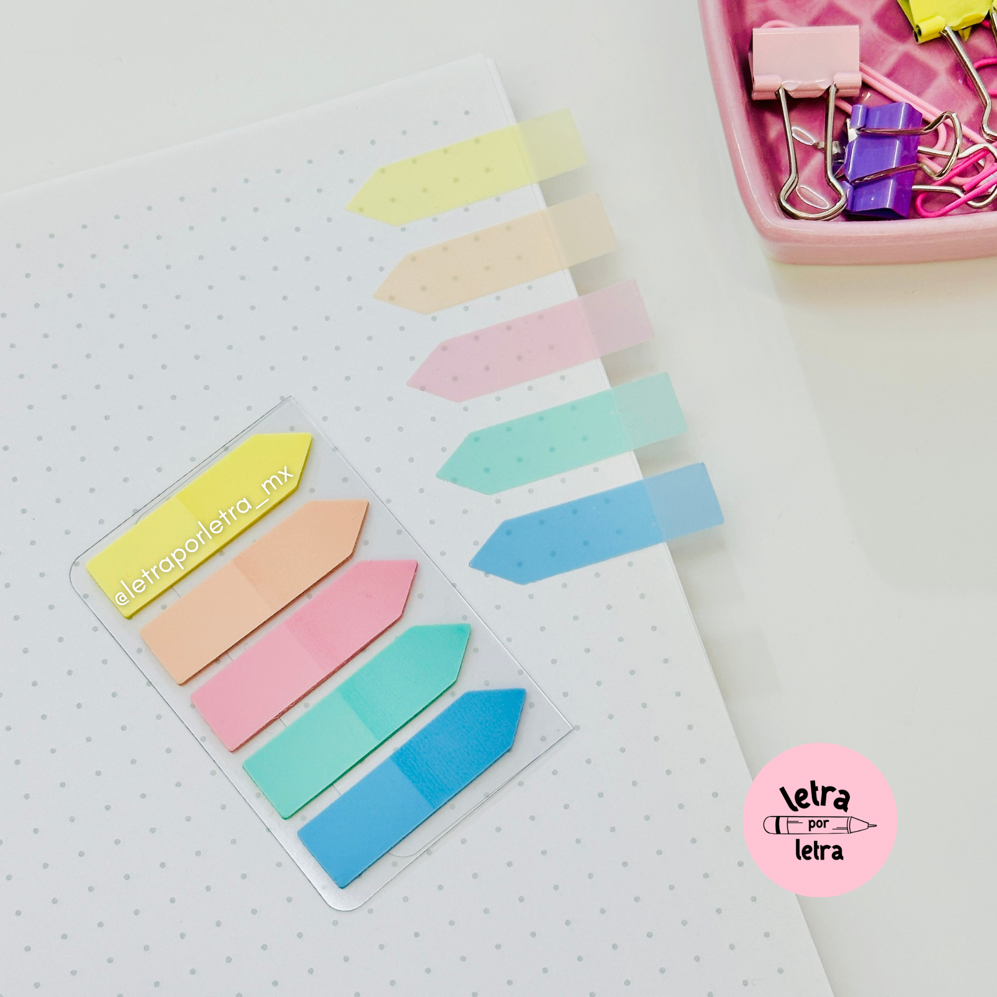 Úsalos para resaltar, agregar notas, marcar páginas y más. Medidas de la planilla completa: 7.5 cm x 5 cm. Material: Pet