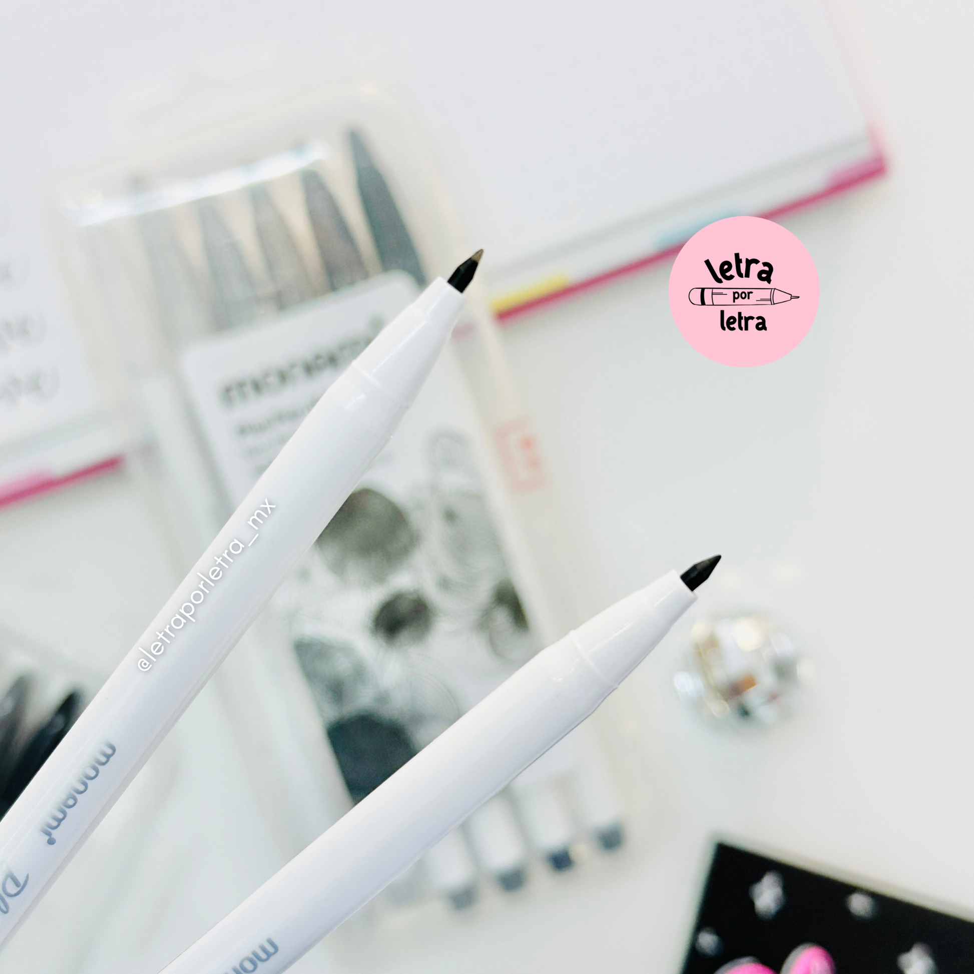 Paquete de 6 plumones de punta de fieltro super fina en tonos grises.