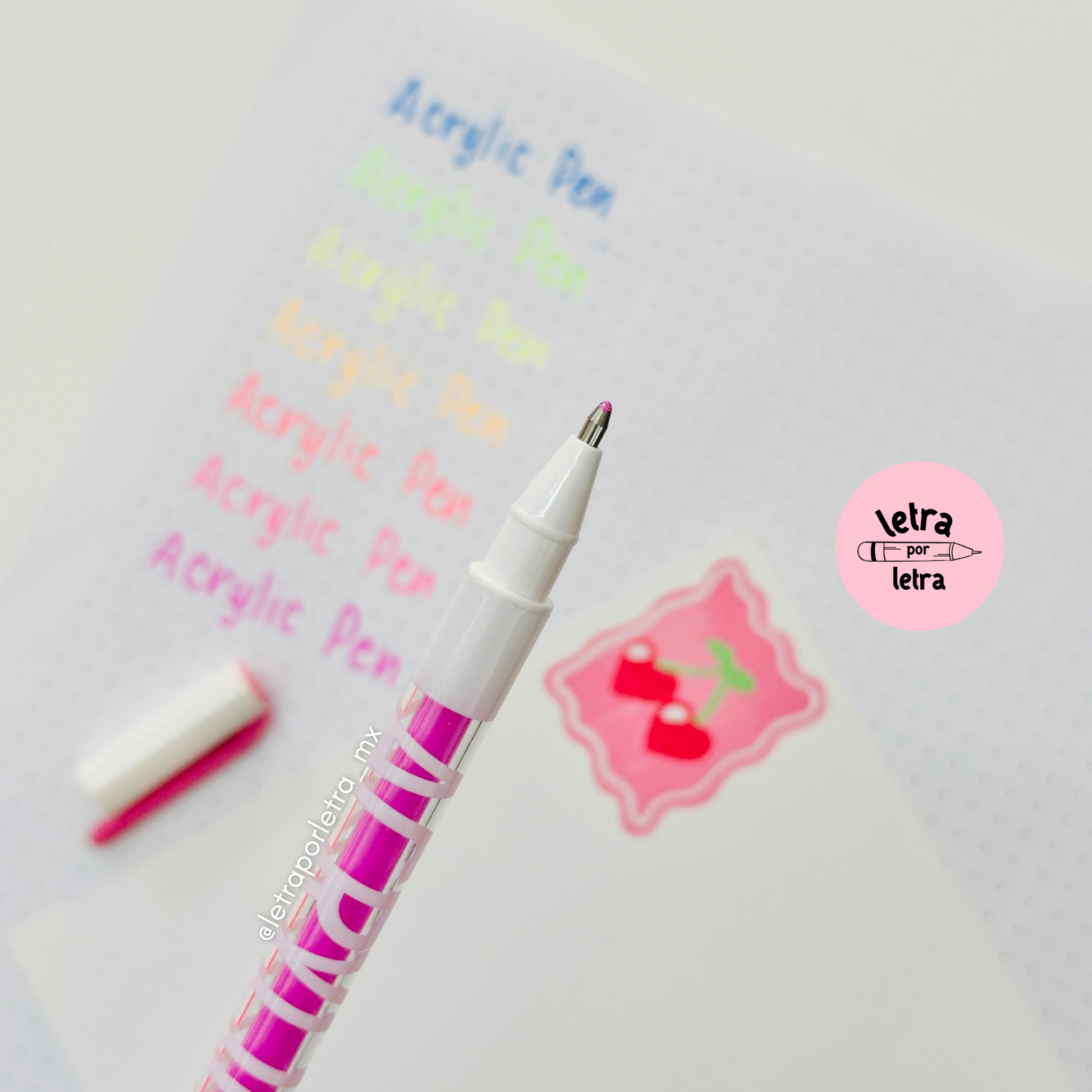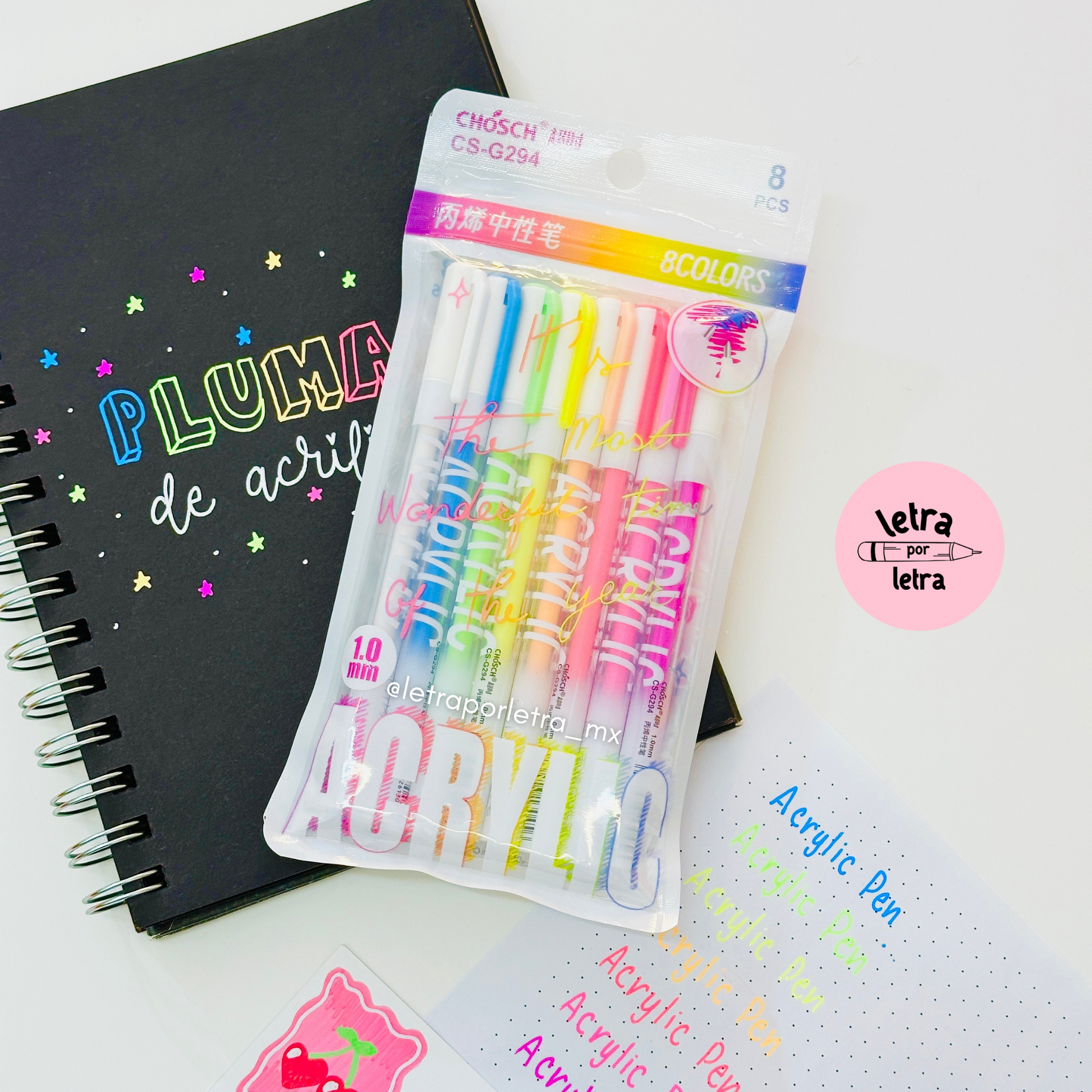 Paquete de 8 plumas de pintura acrílica en colores intensos. Punta de 1 mm.