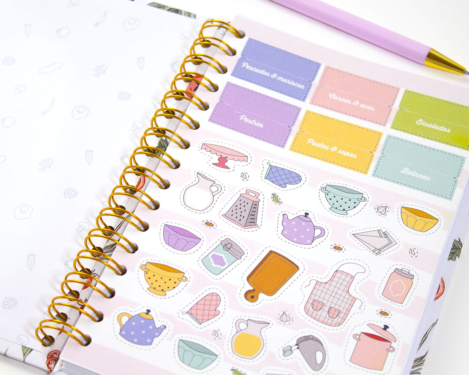 Además incluye 6 stickers separadores para cada categoría, que puedes colocar donde tú decidas. Para hacerlo más divertido, añadimos otros stickers decorativos que le darán un toque extra de color.
