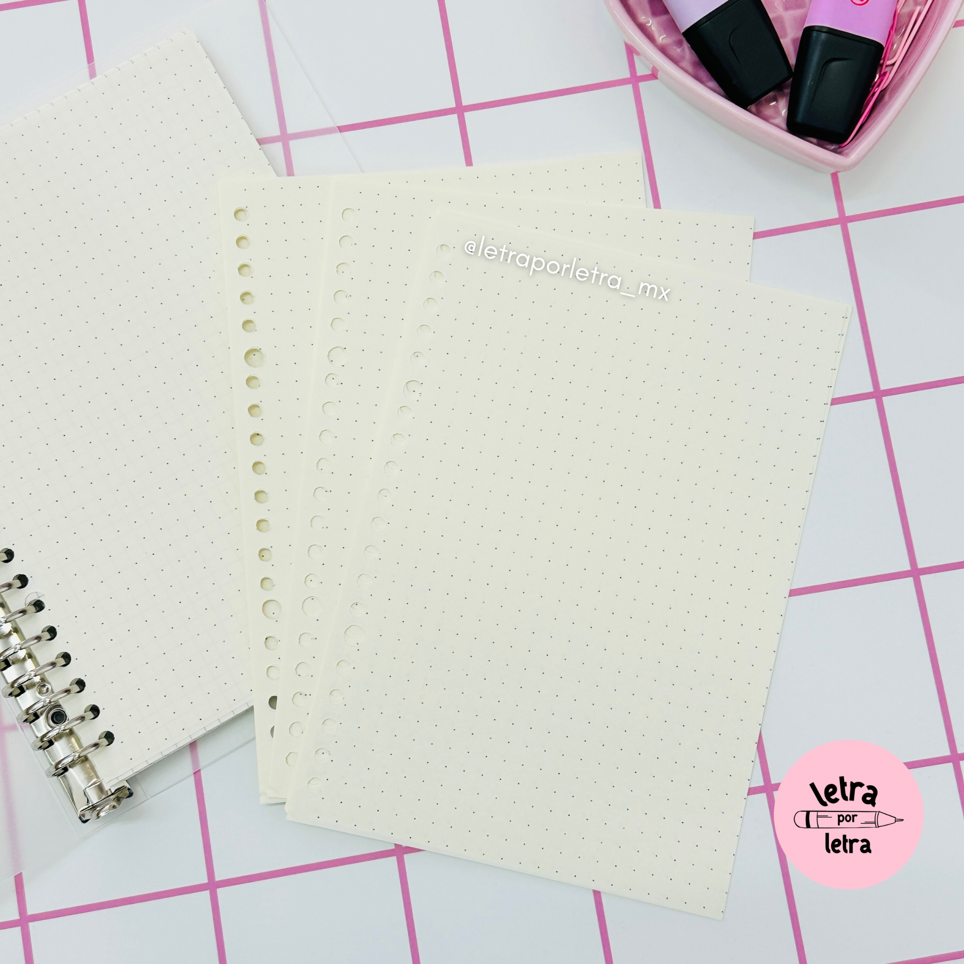 Paquete de 50 hojas punteadas para carpeta en 3 tamaños diferentes: A5, B5 y A4